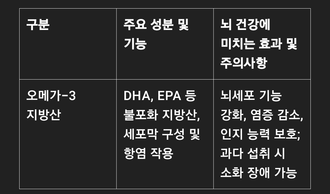 뇌 건강에 미치는 오메가-3의 주요 효과