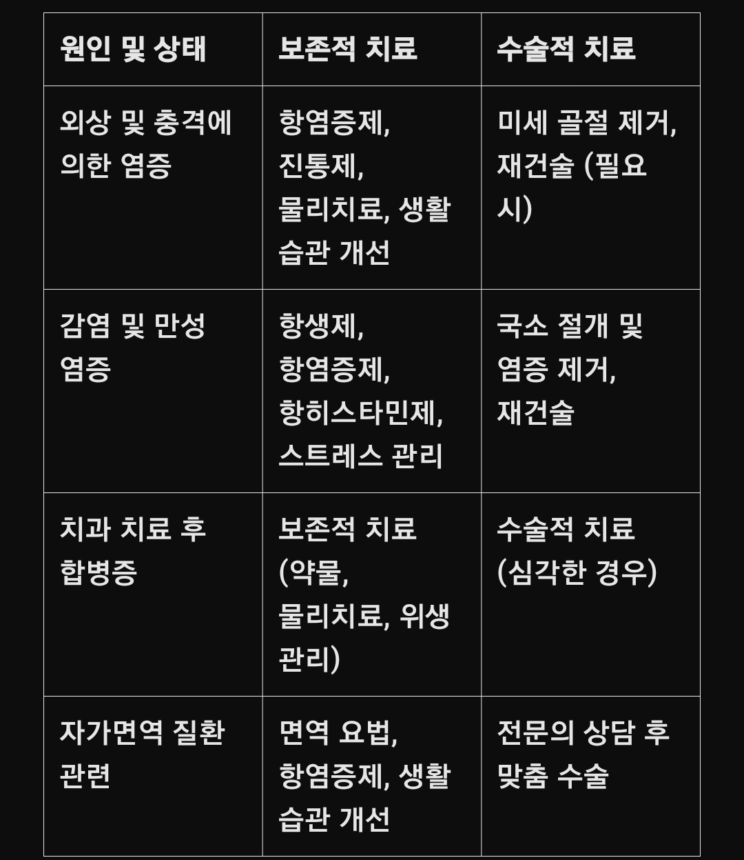 뼈 자체의 문제뿐만 아니라 주변 조직의 염증, 신경 자극 등