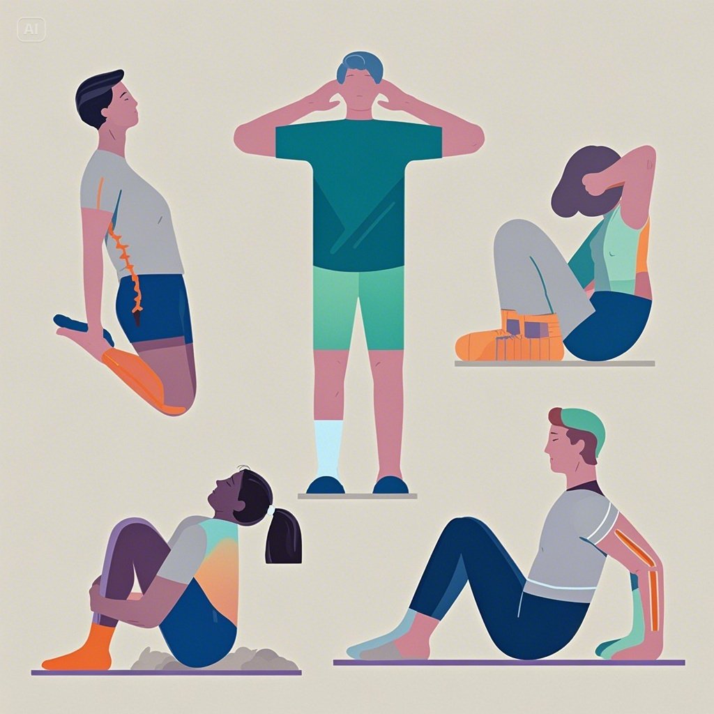 목과 어깨 스트레칭: 목과 어깨 근육을 풀어주어 스트레스를 줄입니다.