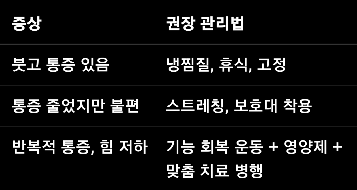 인대 회복에는 ‘근육 이완 + 유연성 회복 + 압력 분산’까지 포함되어야 합니다.