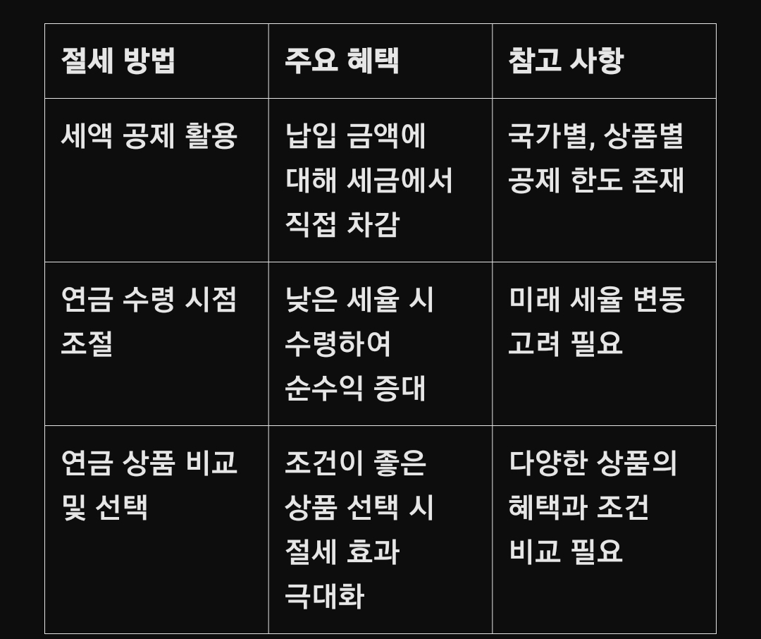 세액 공제, 연금 수령 시점 조절, 그리고 다양한 연금 상품 비교 등을 통해