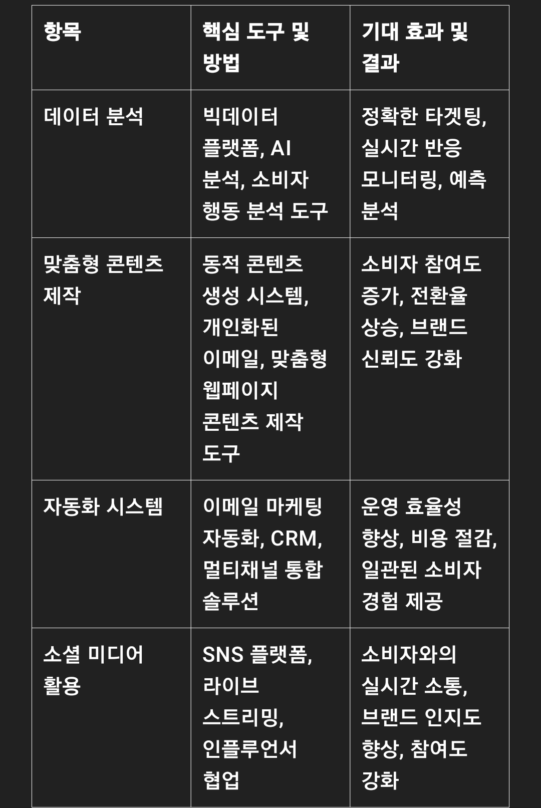 간단한 표: 디지털 마케팅과 개인화 전략 주요 요소