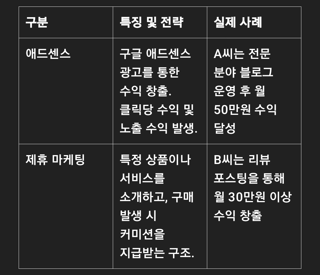 블로그를 통한 수익 창출은 최근 몇 년간 많은 사람들이 관심을 가지는 주제입니다. 특히 인터넷 환경이 급변하는 요즘, 개인의 전문 지식이나 관심사를 공유하며 수익을 창출할 수 있는 방법은 매우 다양합니다. 그중에서도 구글 애드센스와 제휴 마케팅은 비교적 진입 장벽이 낮고, 일정 수준의 트래픽만 확보된다면 꾸준한 수익을 기대할 수 있는 방법으로 많은 분들이 선택하고 있습니다.