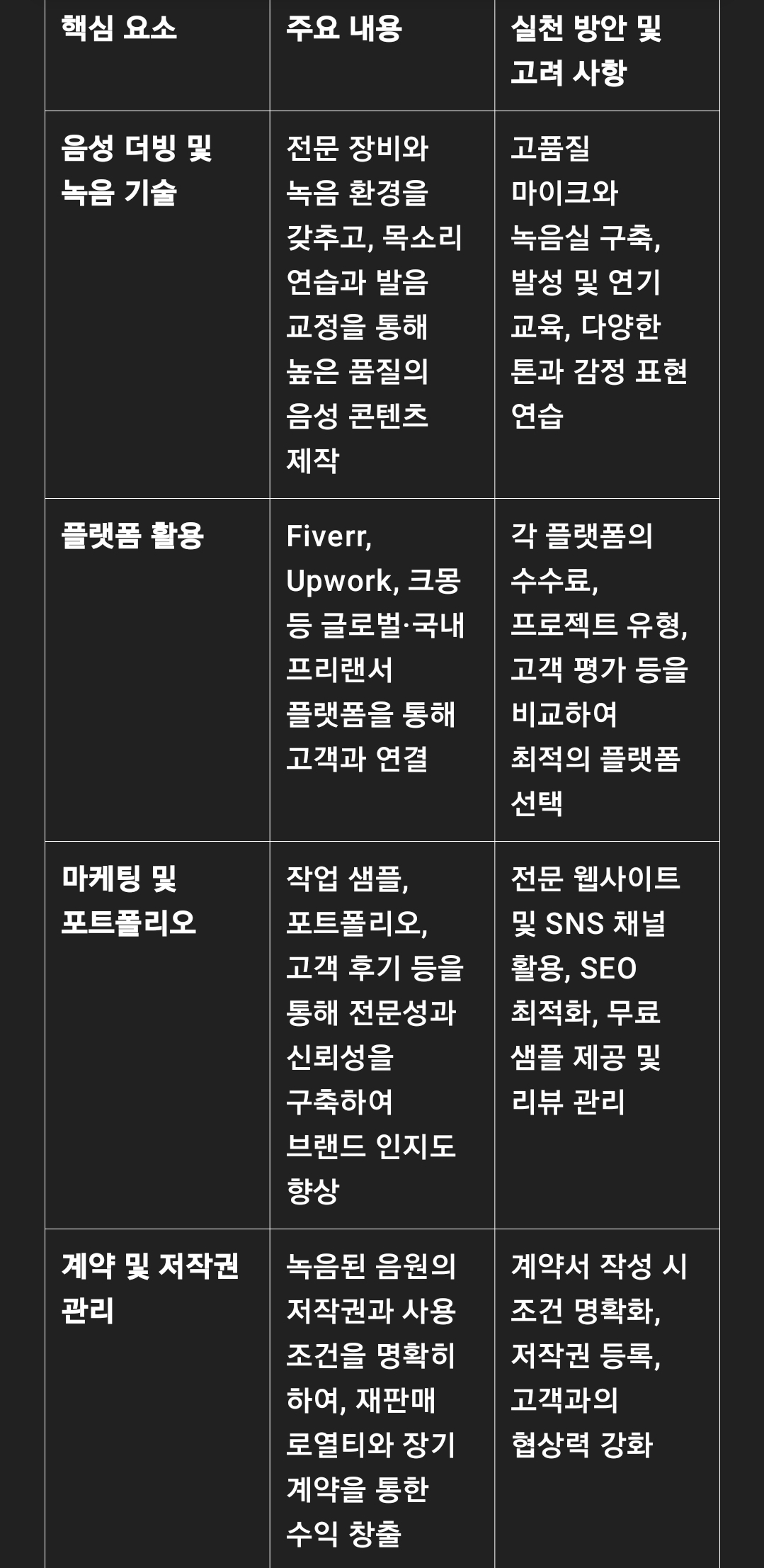 이와 같은 추가 전략들은 음성 더빙 및 오디오북 녹음 부업을 장기적으로 안정적인 수익 모델로 발전시키는 데 큰 도움이 됩니다.