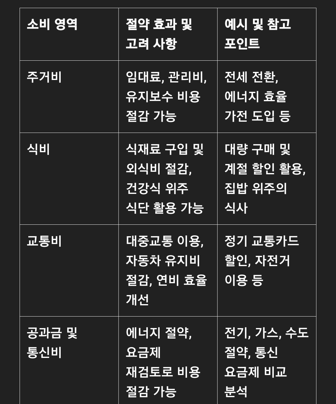 임대료, 관리비, 유지보수 비용 등을 줄이는 다양한 방법이 있으며, 주거 형태를 재검토하는 것도 중요합니다.