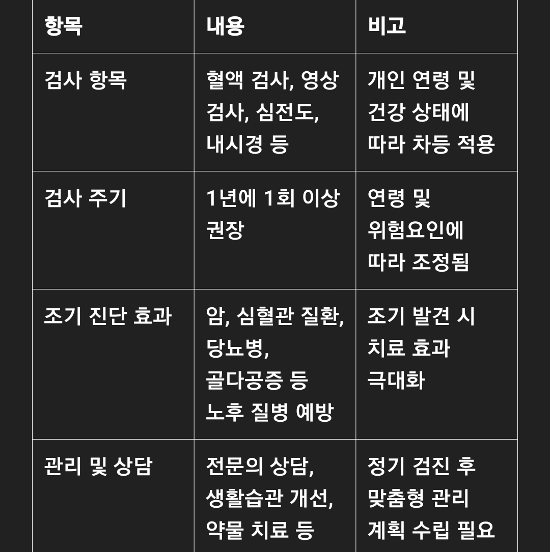 건강검진은 조기 진단, 예방, 치료, 그리고 전반적인 건강 관리를 위한