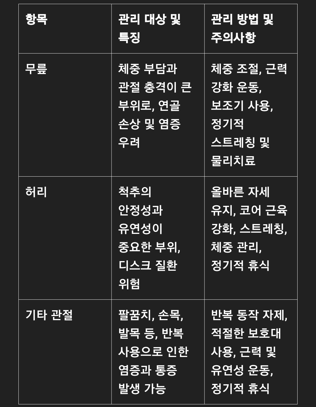 본 글에서는 무릎, 허리, 관절 관리의 필요성과