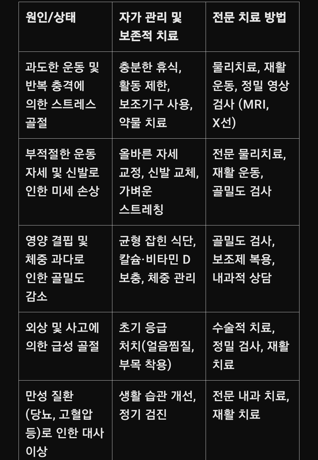 이러한 모든 요소들이 모여 건강한 다리와