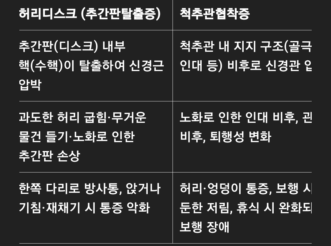 3. 허리디스크와 척추관협착증의 주요 차이점